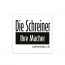 Werbefahne aus wetterfestem Gewebepolyester 160gr/m2, 150x150cm, seitlich links Besatzband mit eingenähten Seilschlaufen, 2 verzinkten Metallkarabinern, 3-seitig gesäumt, 1-farbig schwarz auf weissem Grund in Siebdruck mit Logo «Die Schreiner Ihre Macher», Rückseite spiegelverkehrt
